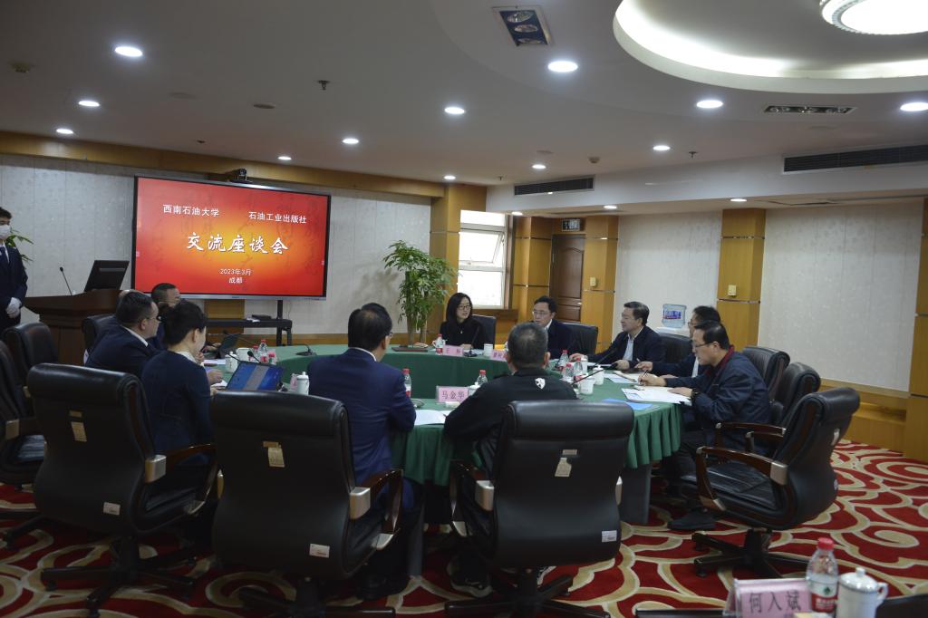 石油工業(yè)出版社總經(jīng)理助理郎東曉、辦公室主任李銀濤、人力資源出版中心主任馬海峰、出版共享中心主任楊仕平、西南出版中心主任馬金華、數(shù)字出版中心負(fù)責(zé)人袁月、圖書營銷中心營銷專家李紅彬、四川發(fā)行站經(jīng)理何入斌,我校黨辦校辦、教務(wù)處、科研院、石工院、新材院、計(jì)科院、馬院負(fù)責(zé)人參加了交流。