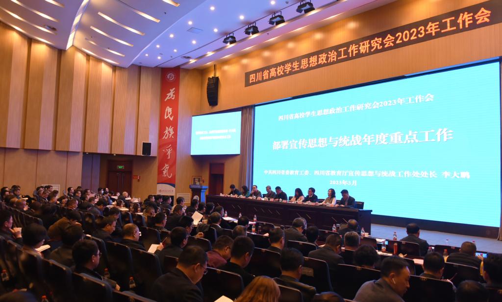 3月30日,四川省高校學生思想政治工作研究會2023年工作會在我校召開。會議以學習貫徹黨的二十大精神和習近平總書記關于高校思想政治工作的重要論述為主題,研判學生思想政治教育新形勢、新變化和新情況,探討學生思想政治教育新思路、新方法和新舉措,推動四川省高校學生思想政治教育工作高質量發展。123所高校的300余名學生思政教育工作者參加會議。