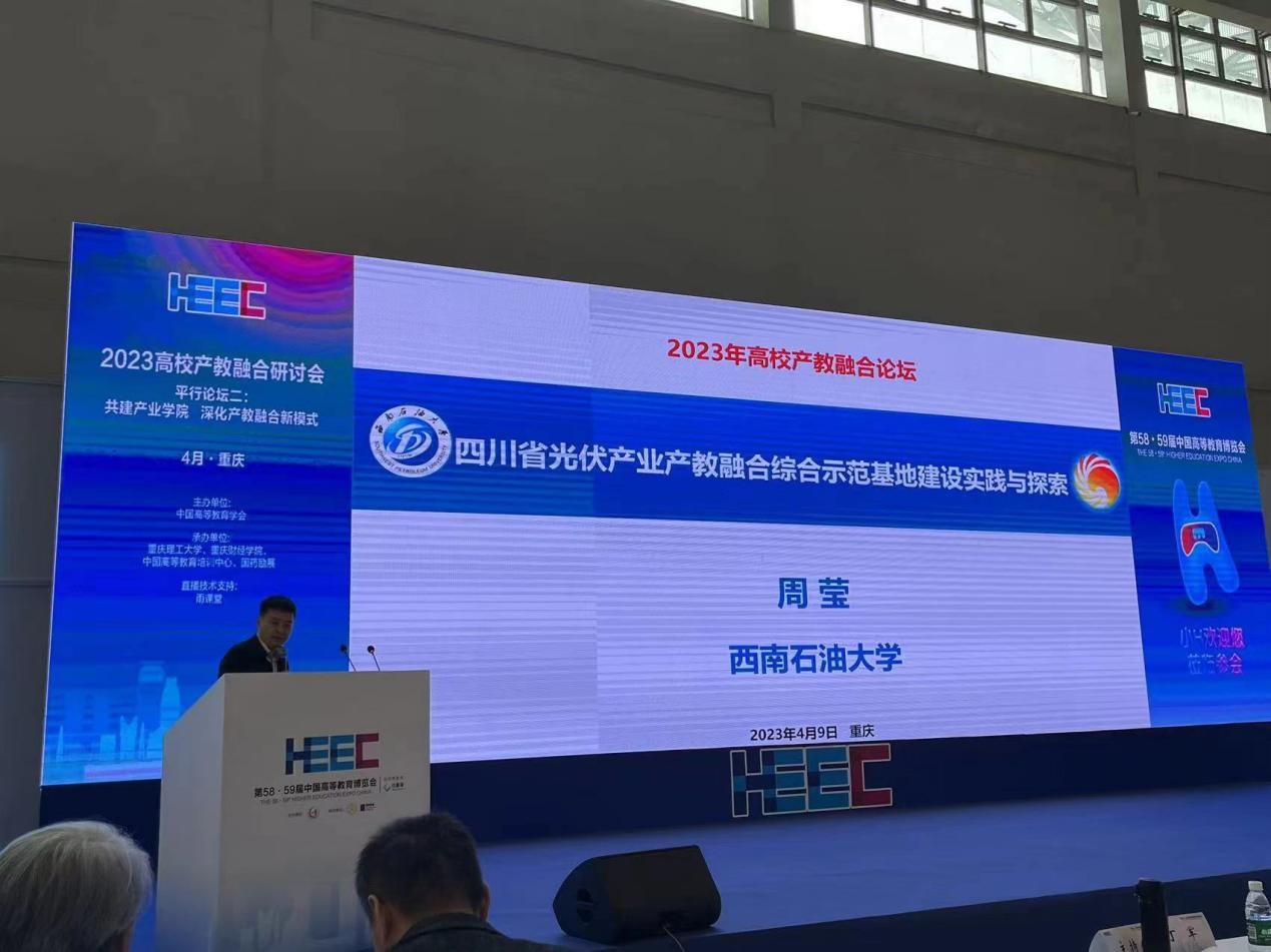 在全國高校產教融合論壇,周瑩作了題為《四川省光伏產業產教融合綜合示范基地建設實踐與探索》的主題報告,闡述了四川省光伏產業面臨的產業、人才、技術三大矛盾,介紹了西南石油大學與通威太陽能(成都)有限公司共建一院、兩中心、五高地的“1-2-5”光伏人才培養產教融合體系和我校在光伏產業產教融合方面的實踐情況。