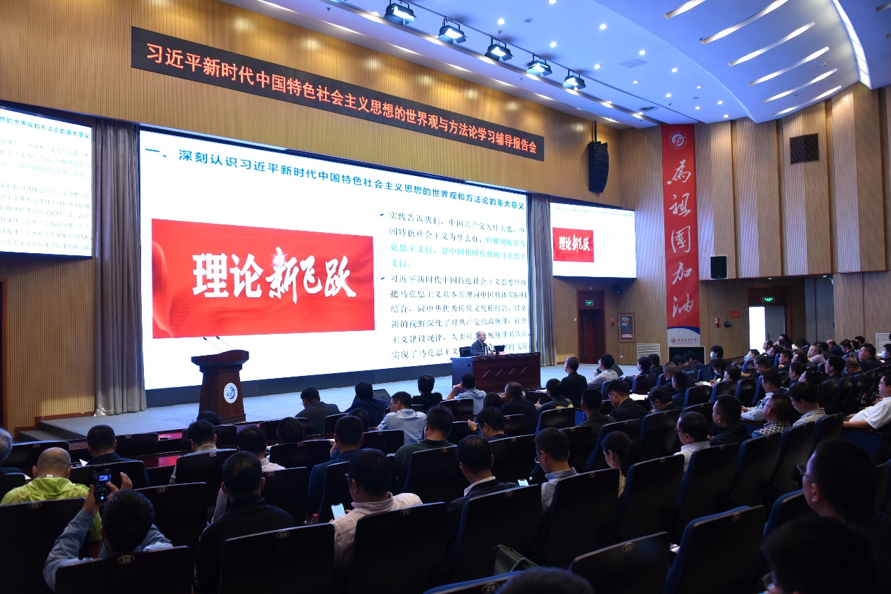 5月22日下午,學(xué)校在圖書館學(xué)術(shù)報(bào)告廳舉行習(xí)近平新時(shí)代中國特色社會主義思想的世界觀與方法論學(xué)習(xí)輔導(dǎo)報(bào)告會。在前期讀原著學(xué)原文悟原理的基礎(chǔ)上,邀請到北京師范大學(xué)思想政治工作研究院院長、博士生導(dǎo)師馮剛教授為學(xué)校黨員干部進(jìn)一步進(jìn)行專題輔導(dǎo),推動理論學(xué)習(xí)走深走實(shí)。