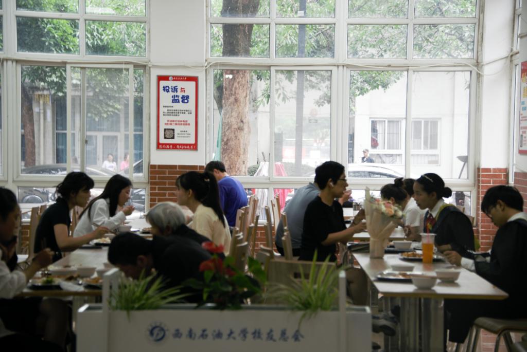 在學(xué)生一食堂,正在陪母親用餐的楊同學(xué)今年畢業(yè)后將繼續(xù)留在本校攻讀博士學(xué)位。“他都說(shuō)去外面吃,我還是想來(lái)體驗(yàn)一下學(xué)校食堂的飯菜。味道還真不錯(cuò),食品安全更有保障。希望他接下來(lái)在西南石大求學(xué)的時(shí)光里能多來(lái)食堂,少吃路邊攤。”楊同學(xué)的母親笑著說(shuō)道。