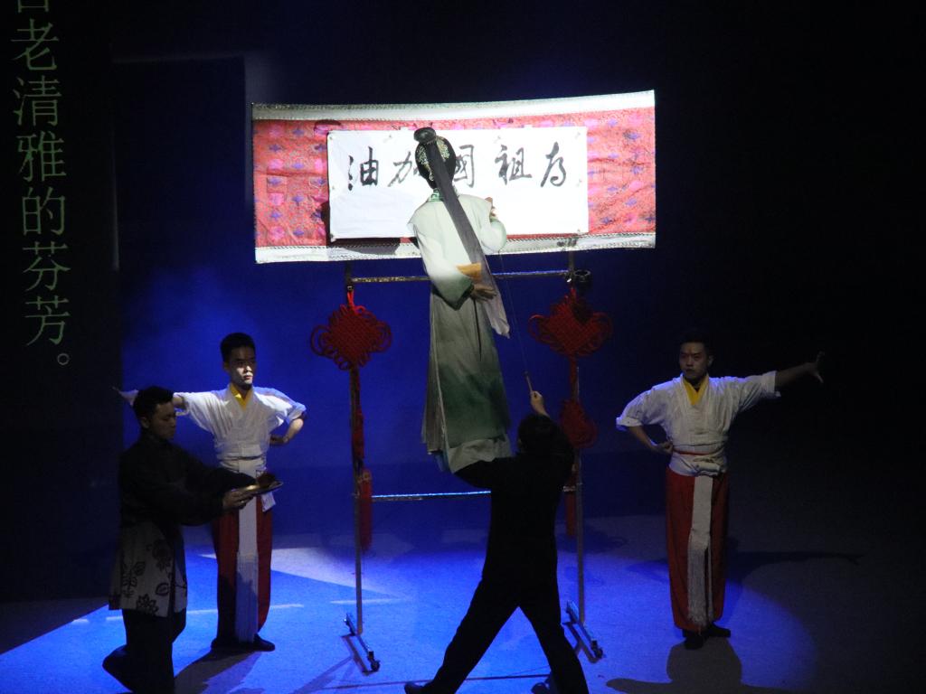 6月13日,四川省(南充)大木偶劇院展演了川北大木偶戲《天下有偶》。這部川北大木偶戲分為《心中有偶》《人間有道》《世間有愛》《天下有情》四幕,以爺孫三人的入場拉開帷幕,講述了“我們是中華五千年文明的傳承者”的故事,集合了音樂、舞蹈、繪畫、書法、戲劇等表演藝術,融入了川劇變臉、噴火、吐煙、頂缸等川劇獨有的技巧,翎子功、扇子功、水袖功的展示,博得了觀眾陣陣喝彩。美麗生動的木偶在匠人的刻刀下起舞,巧妙的舞臺設計、精美的木偶、華麗的衣裳,讓現場觀眾為之震撼。木偶現場題字“為祖國加油”,寄托了母校對畢業生的真切勉勵。