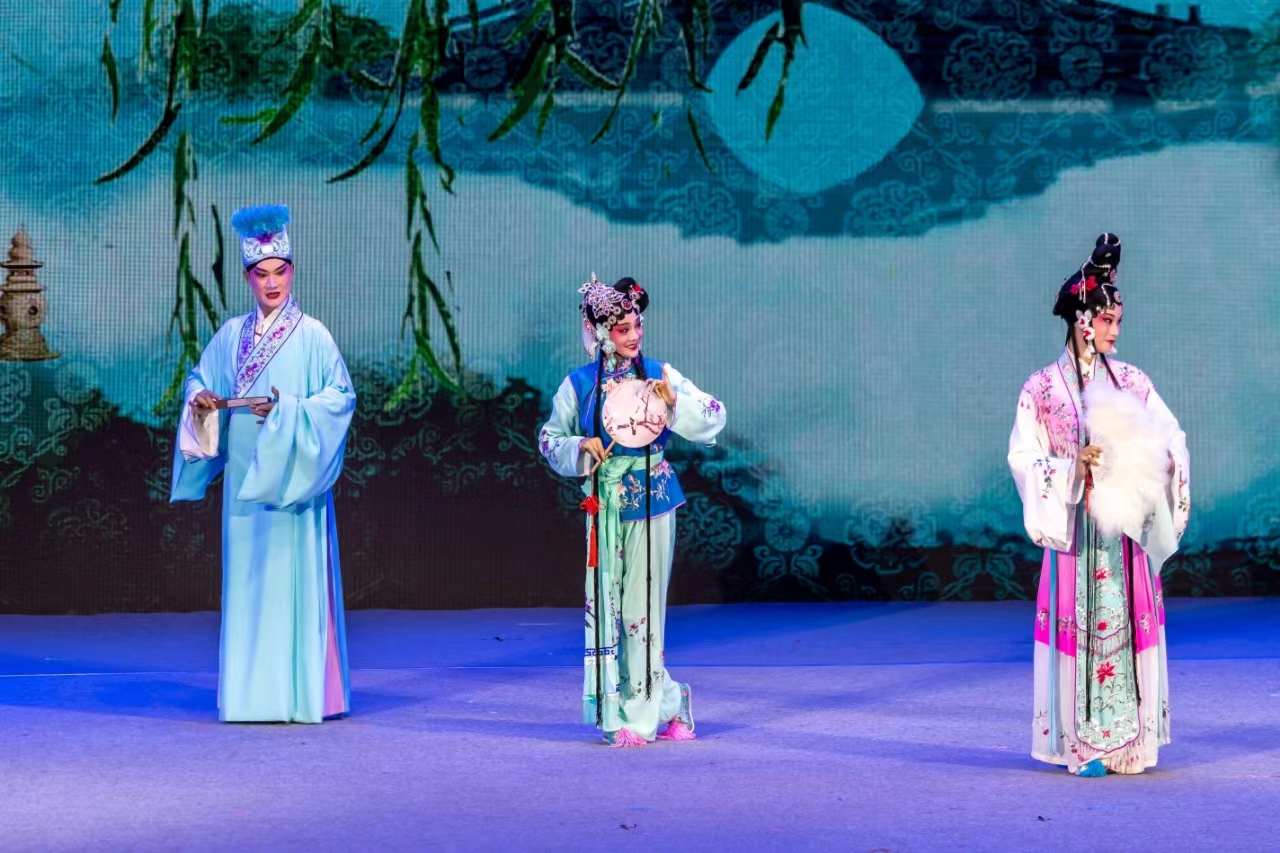 6月14日,南充市川劇團展演了川劇《白蛇傳》。全戲共分九幕:佛殿掙鎖、收青下凡、船舟借傘、終成眷屬、扯符吊打、蒲陽驚變、仙山盜草、江岸誘許和水漫金山,講述了白蛇和許仙的兩生愛恨情仇。演員們在舞臺上“吞云吐霧”,輔以噴火、變臉、踢慧眼等川劇特技,水袖翩舞,撐傘江南煙雨中,女旦的紅妝粉黛、武生的黑臉沉陰、川劇的獨特唱腔,展現了中華優秀非遺文化的韻律和魅力,震撼、凄美。
