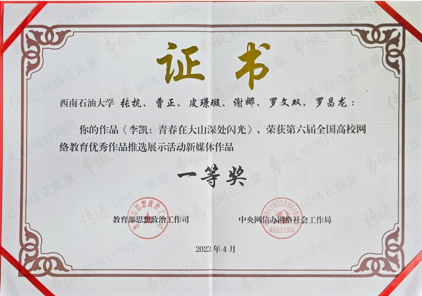 近期,教育部和中央網信辦公布了第六屆全國大學生網絡文化節和全國高校網絡教育優秀作品推選展示活動獲獎作品名單。我校獲評優秀組織獎(全省僅3個單位獲評)。我校黨委宣傳部張抗、曹正等創作的《李凱:青春在大山深處閃光》獲評新媒體作品類一等獎。這是我校首次獲得全國高校網絡教育優秀作品推選展示活動一等獎、優秀組織獎。此外,我校還獲得三等獎2項,優秀獎4項,優秀制作水平獎1項。