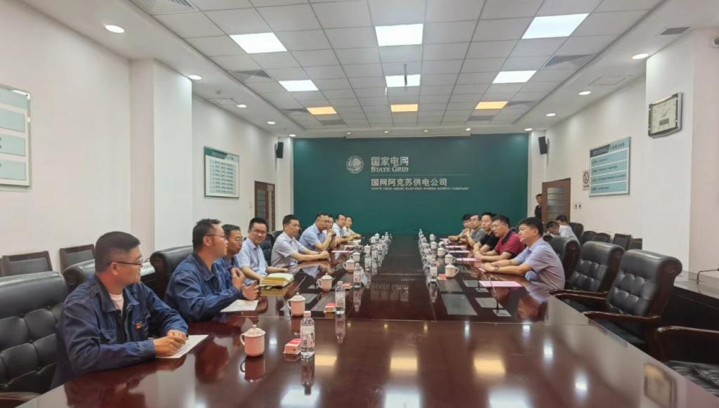 在新疆阿克蘇地委委員、地區行署副專員趙大毅,阿克蘇地區行署副秘書長魏云峰,阿克蘇能源(集團)有限公司董事長陳明陪同下,李德海一行來到國網阿克蘇供電公司與公司總經理胡常勝、黨委副書記藏曉菲等進行了座談交流。在公司工作的電氣工程及其自動化2018級楊宏業校友詳細介紹了入職以來的工作體會,表示會珍惜公司提供的發展平臺,努力多做貢獻、做好貢獻。李德海對國網阿克蘇供電公司給予學校人才培養質量的認可、為畢業生提供的廣闊發展平臺表示感謝,希望校企雙方能進一步深化合作。
