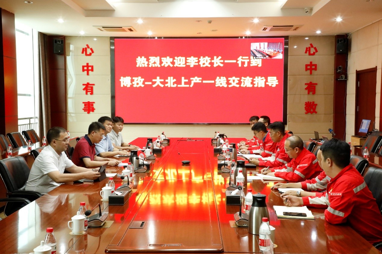 在中國石油塔里木油田博大采油氣管理區執行董事、黨委書記李志銘的主持下,李德海一行與十余名校友通過線上、線下的方式進行了座談交流,聽取校友們對學校改革發展的意見和建議。中國石油塔里木油田油氣工程研究院院長、黨委副書記馮少波簡要介紹了學校畢業生在油田的發展情況,校企雙方在工程領域、油服領域的合作概況。博大采油氣管理區總工程師周建平介紹了管理區的基本情況和“十四五”發展規劃。校友們紛紛感恩母校培養并圍繞學校人才培養的知識體系構建、實踐環節、石油傳統教育等方面,以及招生就業、聯合科技攻關、校友培訓深造等方面建言獻策。李德海對校友們提出的意見和建議逐一回應,希望校友們?;啬感?纯?。