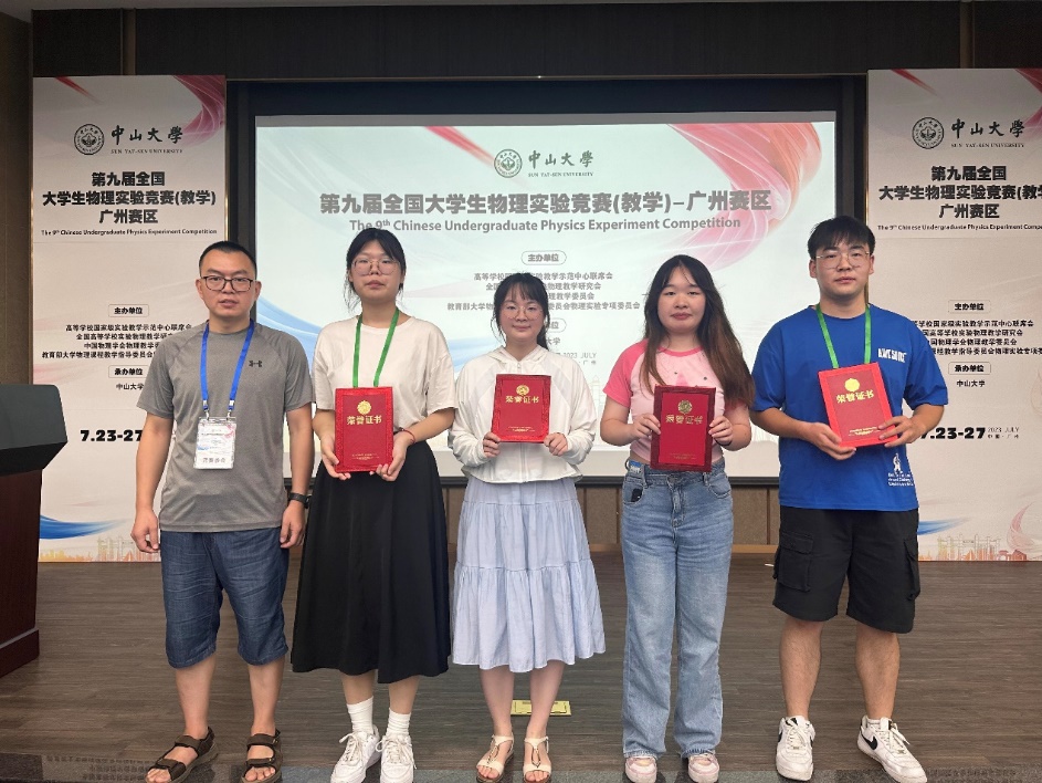 近日,2023年第九屆全國大學生物理實驗競賽(教學)在中山大學舉行。我校4名學生參賽,獲得全國二等獎1項、全國三等獎2項。