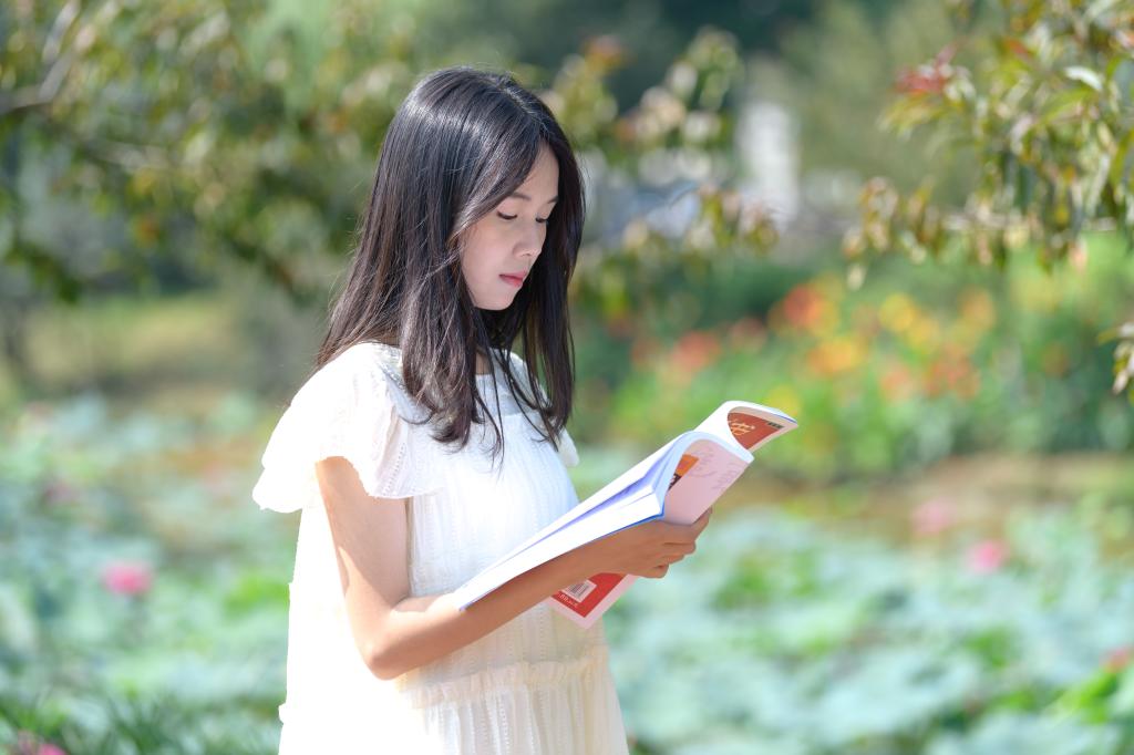 2021級學生陳桂玲在夢溪湖畔背單詞
