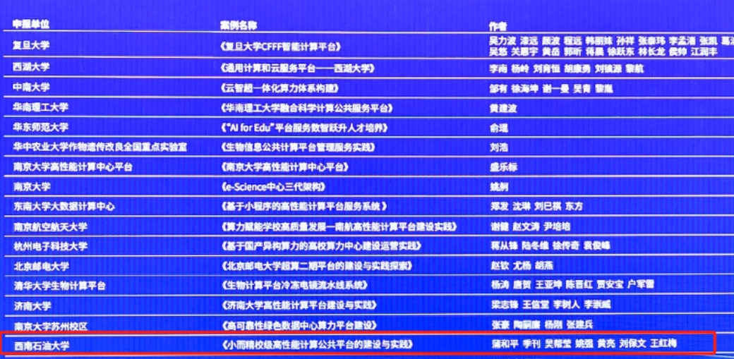 近日,2024年(第二屆)中國高校算力聯(lián)盟年會公布了2024年中國高校算力優(yōu)秀案例評審結(jié)果,我校《小而精校級高性能計算公共平臺的建設(shè)與實踐》在眾多高校中脫穎而出,榮獲“2024年中國高校算力優(yōu)秀案例”,是四川省第一所獲得此項殊榮的高校。