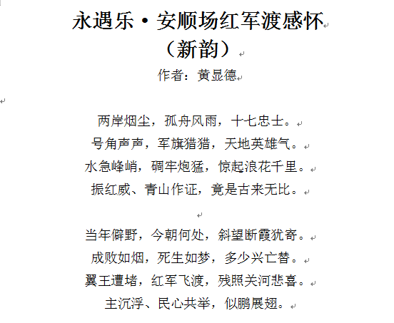 優秀獎作品:黃顯德《永遇樂·安順場紅軍渡感懷》(寫經典-詩文類)