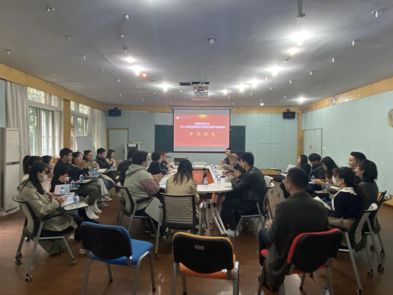 為提升2021年新進(jìn)輔導(dǎo)員心理教育和心理健康服務(wù)能力,心理發(fā)展與服務(wù)中心專門舉辦心育能力提升專項(xiàng)培訓(xùn),30多人參培。10月21日,心理中心舉行了開班儀式。