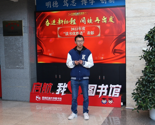 表彰儀式由圖書館直屬黨支部書記楊春麗主持,館長王良超、副館長李文波出席并頒獎。本次頒獎儀式還特別邀請“全國最美大學生”劉宸同學作為頒獎嘉賓共同頒獎。法學院李清清、化工院王逍、理學院研究生陳川等20名同學榮獲讀者優勝獎。儀式上劉宸同學專門分享了他的讀書心得,他說,在入伍之后讀書給了他幫助,在軍營訓練間隙中,書是陪伴他最好的朋友,正是這段時間密集地閱讀,讓他感受到讀書不僅能祛除孤獨,通過閱讀一些中國古代、近現代的經典文化,更是開闊了視野提振了自信。借閱第一名是理學院陳川同學,他分享閱讀體驗時說,他把書籍分為三類,第一類是自己專業的書籍,第二類是其它專業的書籍,第三類是非專業書籍。對于專業書籍,我會通過主題閱讀法來閱讀,例如我最近在研究什么方向?我就閱讀涉及這個方向的書籍。對于其它專業書籍,去尋找與我的專業的共性,尋找寫論文的靈感。在我大二時,學習遇到了瓶頸,我就先努力學習45分鐘,然后再用15分鐘來閱讀課外書。那段時間學習效率非常高,還閱讀了很多課外書。心情不好的時候,也會閱讀課外書,他希望更多的同學能夠經常到圖書館并且喜歡閱讀,與書為友。