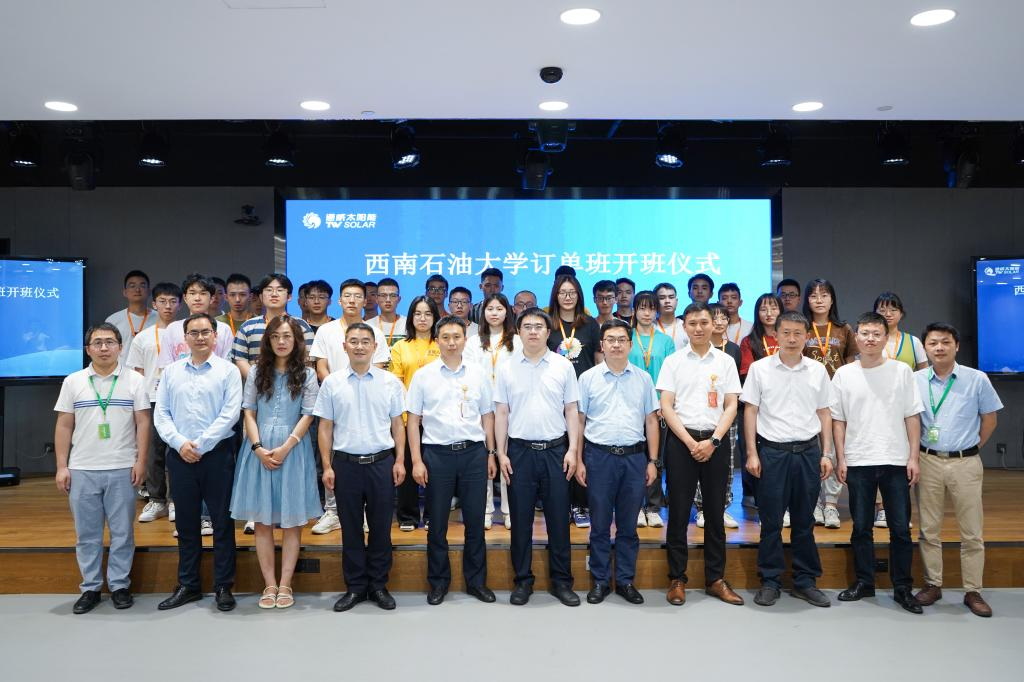 新能源與材料學(xué)院“通威太陽(yáng)能班”近日在通威太陽(yáng)能有限公司雙流基地開班,31名訂單班學(xué)生參加開班儀式。