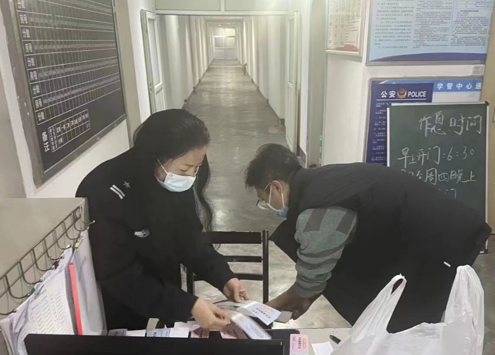 學工部工作人員向樓長發放外出憑證