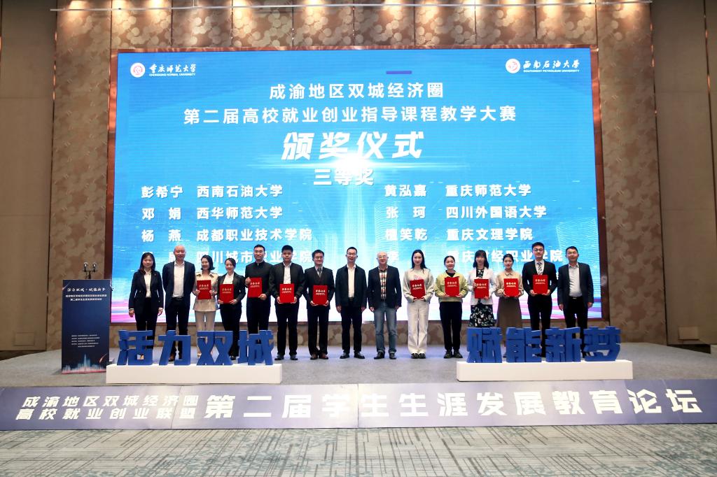 在4月3日舉行的成渝地區雙城經濟圈第二屆高校就業創業指導課程教學大賽中,我校新能源與材料學院輔導員廖愛羚獲得就業指導組一等獎,外國語學院輔導員彭希寧獲得就業指導組三等獎。