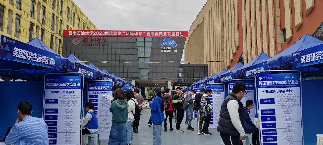 5月11號上午,學校在成都校區學生活動中心校園招聘廣場舉辦了留學公益咨詢活動,向全校15個學院的學生提供了美國、英國、加拿大、歐洲、澳大利亞、中國香港、新加坡、日本、韓國9個國家和地區90多所知名高校的留學咨詢。
