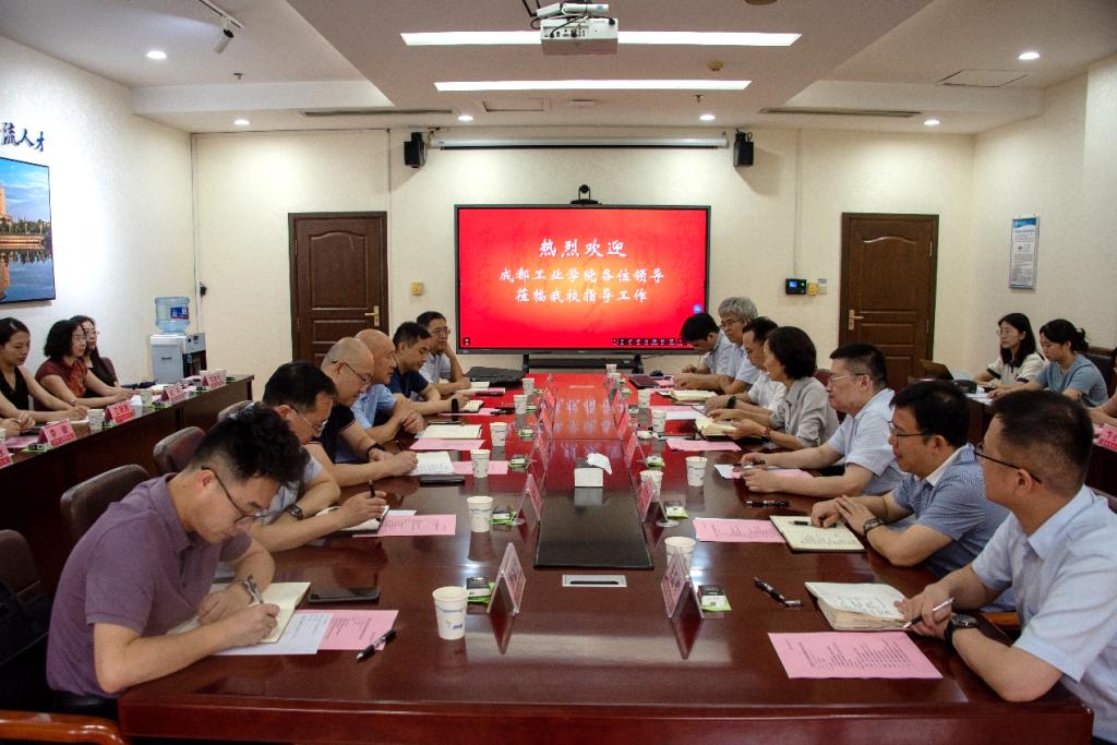 6月25日,成都工業(yè)學(xué)院黨委常委、副校長李成大,副校長張祖濤帶隊(duì)來我校調(diào)研交流,我校黨委常委、副校長劉向君出席座談會(huì)。教務(wù)處處長廖柯熹主持。