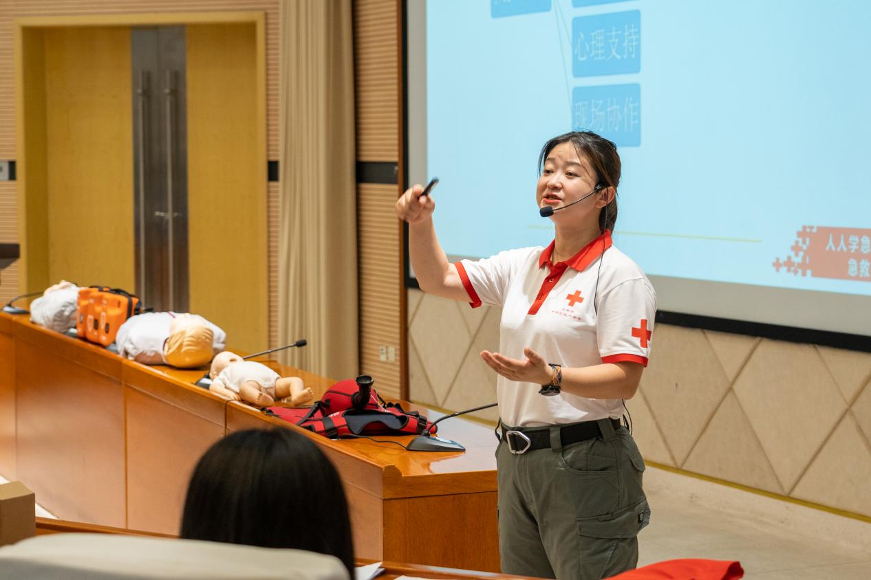 培訓開始前,校醫院院長張繼紅總結了我校在應急救護培訓、應急救護比賽、救護基地建設、救護隊伍發展等方面取得的成效。她表示,作為首批全國急救教育試點學校,我們將通過多種方式,不斷錘煉,讓更多同學在學深悟透中成為一名愿意救、敢于救、能夠救的紅十字救護員。