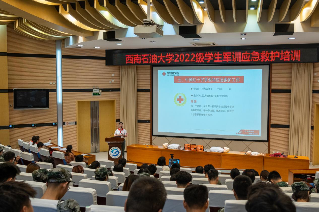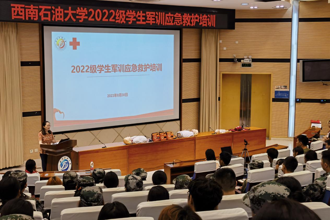 8月30日,校醫院邀請新都區紅十字會講師開展軍訓期間急救培訓,2022級學生通過線下線上結合的方式參與培訓,線上觀看人數達7465人,約150名學生在線下參與培訓并考取了紅十字急救員證。