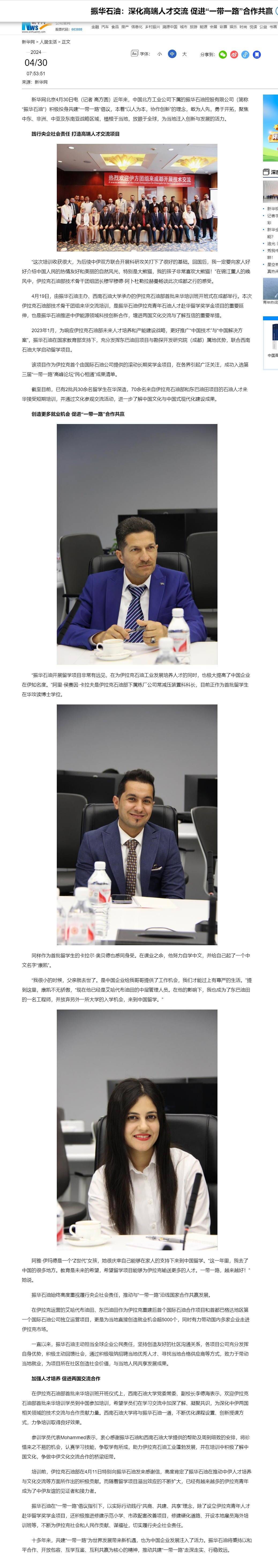 培訓前,伊拉克石油部在4月11日特別向振華石油發來感謝信,高度肯定了振華石油在推動中伊人才培養與文化交流等方面所作出的積極貢獻。而隨著留學項目溢出效應的不斷擴大,已經有越來越多的伊拉克青年成為了中伊友誼的見證者和接力者。