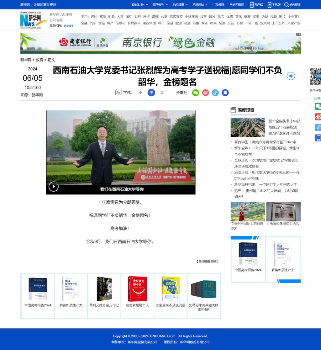 新華網報道鏈接:http://education.news.cn/20240605/278ac78287454eb3bc6524be4b4e8c3b/c.html