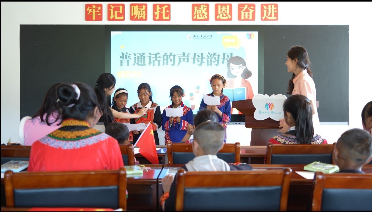 夏日熾熱燃青春,推普實踐筑夢行。今年暑假,西南石油大學藝術學院學子積極響應國家鄉村振興戰略,立足專業優勢,共組建11支推普實踐教育團隊,奔赴新疆巴音郭愣蒙古自治州輪臺縣、四川省涼山昭覺縣三河村、山西陽縣融媒體中心等地開展推普實踐教育活動20余場,簽訂推普教育基地合作協議3項,用實際行動詮釋了新時代青年的責任與擔當。