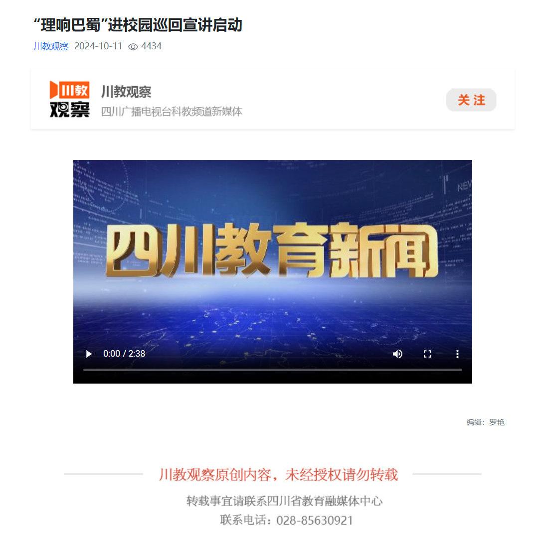 四川教育發(fā)布報道鏈接:https://mp.weixin.qq.com/s/OFc--Dtge_z-B6Dr43eqzg