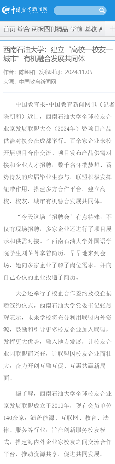 中國教育新聞網報道鏈接:http://m.jyb.cn/rmtzcg/xwy/wzxw/202411/t20241105_2111266103_wap.html