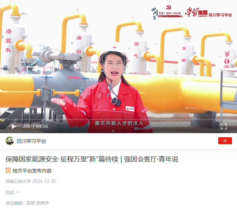 報道鏈接:https://article.xuexi.cn/articles/index.html?art_id=10304463307953766419&source=share&cdn=https%3A%2F%2Fregion-sichuan-resource&study_style_id=video_default&reco_id=102f0ef13078c0a8865f000c&share_to=wx_single&study_share_enable=1&study_comment_disable=1&ptype=0&item_id=10304463307953766419