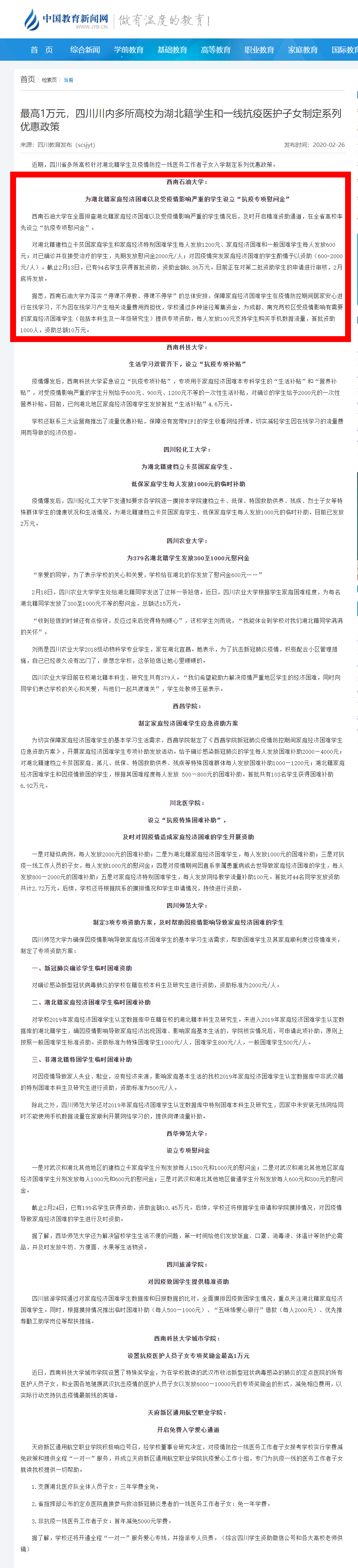 近期,四川省多所高校針對湖北籍學生及疫情防控一線醫務工作者子女入學制定系列優惠政策。