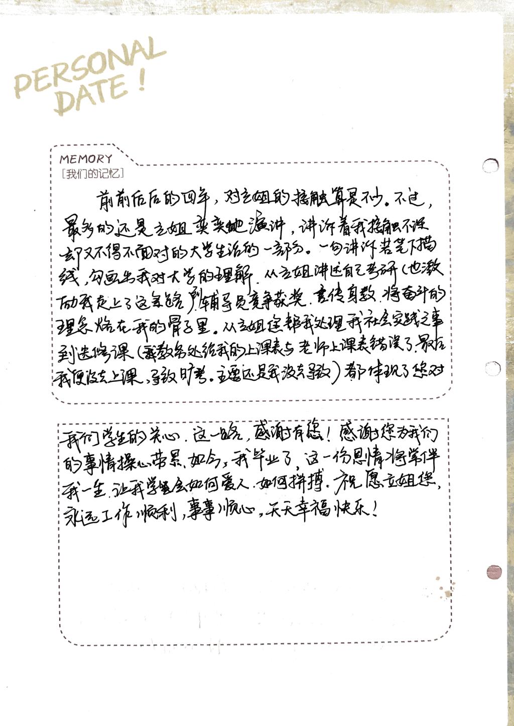 學生臨近畢業(yè)總會寫上一段感謝、祝福的話語送給舒小立,這也是舒小立視為自己最珍貴的禮物。