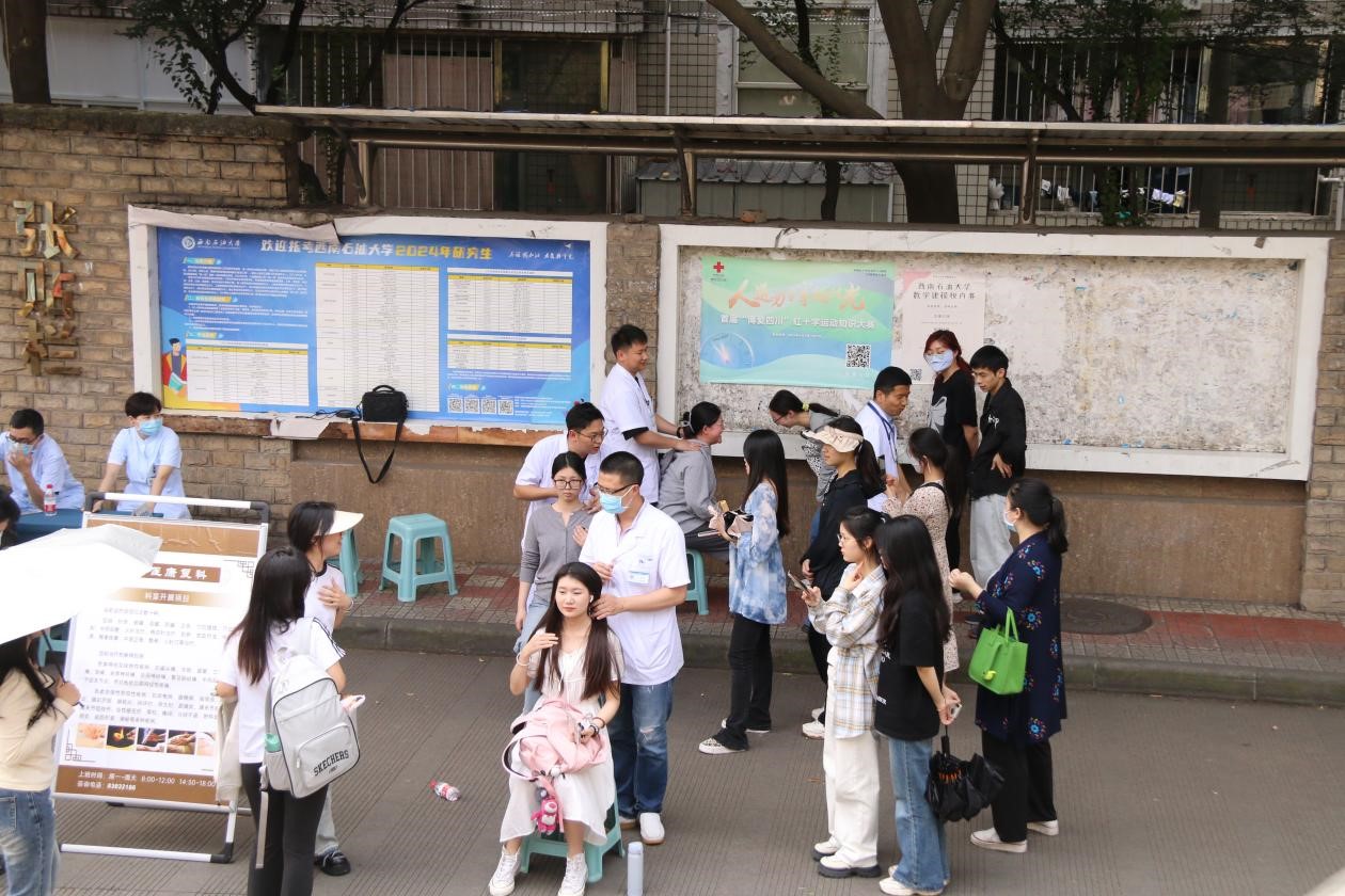 “我的眼睛之前就不舒服,但最近忙實(shí)習(xí),一直沒(méi)時(shí)間去醫(yī)院,還好有義診活動(dòng)把醫(yī)療服務(wù)送到了我們身邊”,2021級(jí)經(jīng)濟(jì)管理學(xué)院學(xué)生黃明霞高興地說(shuō)。4月25日至26日,校醫(yī)院紅十字醫(yī)療志愿服務(wù)隊(duì)在學(xué)生一食堂和二食堂旁開(kāi)展了義診活動(dòng),前來(lái)咨詢(xún)的同學(xué)絡(luò)繹不絕。