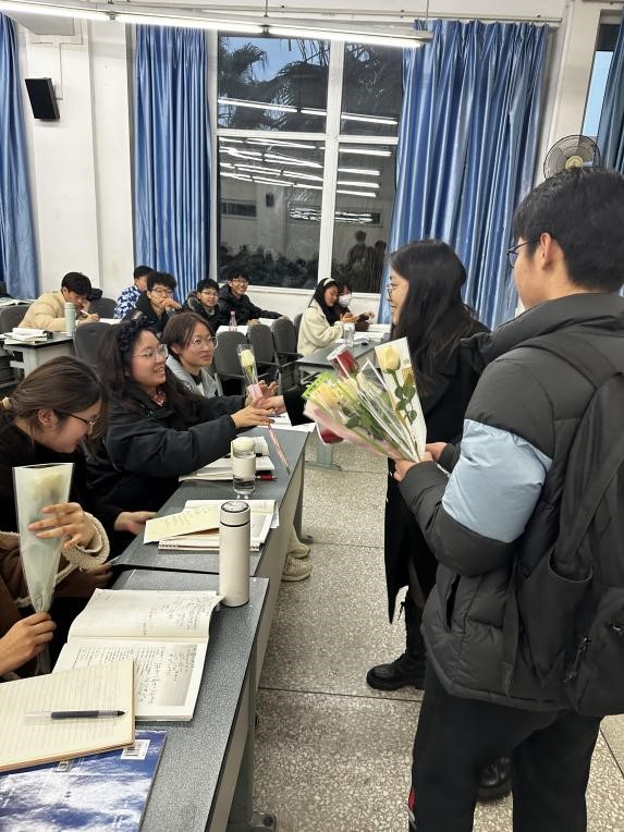 輔導(dǎo)員們帶著鮮花走進(jìn)教室、寢室和實(shí)驗(yàn)室等,老師們送上了誠摯的祝福,并向女同學(xué)們提出了期望,建議同學(xué)們精心培養(yǎng)自己的鮮花,并觀察它的變化,感受美好的瞬間,過程中去探索生命的意義和價(jià)值,形成積極的生活態(tài)度。