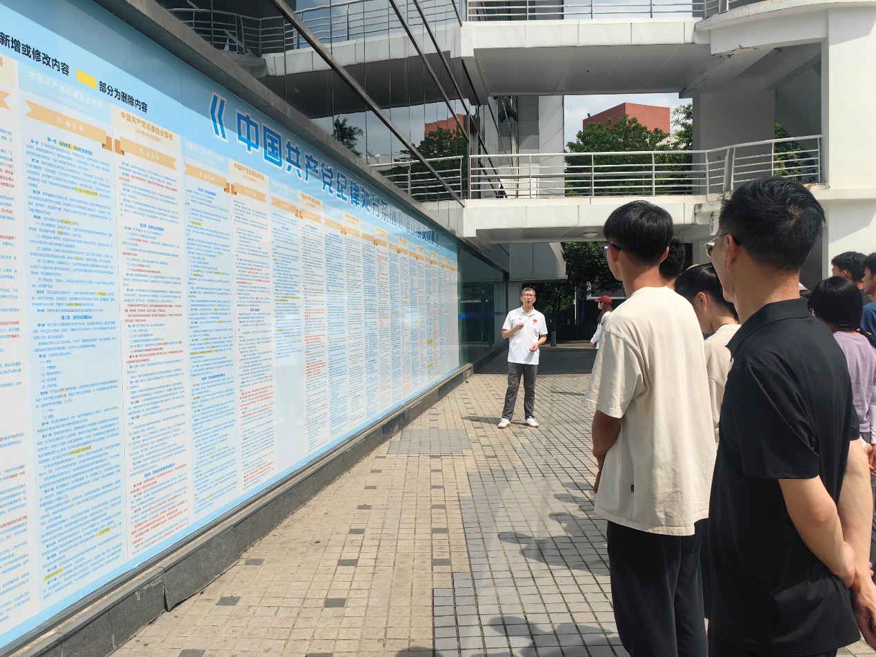 體育學(xué)院還專門制作了《中國共產(chǎn)黨紀(jì)律處分條例》新舊對照版噴繪、妙語宣傳畫及警示案例宣傳展示,各支部把組織生活學(xué)習(xí)從會議室搬到了戶外,通過對照學(xué)習(xí)、案例分析及警示教育等現(xiàn)場黨課教學(xué)等形式,增強(qiáng)師生紀(jì)律意識和規(guī)矩意識。