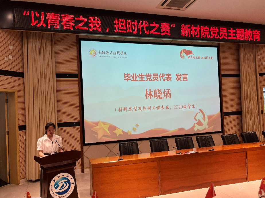 為增強畢業(yè)生黨員黨性修養(yǎng),推動黨紀學習教育走深走實,發(fā)揮黨建引領、產教融合的育人優(yōu)勢,6月12日,四川省光伏產業(yè)產教融合綜合示范基地、西南石油大學新能源與材料學院組織了“以青春之我,擔時代之責”黨員主題教育,為學院畢業(yè)生黨員上了在校期間的最后一堂思政課。