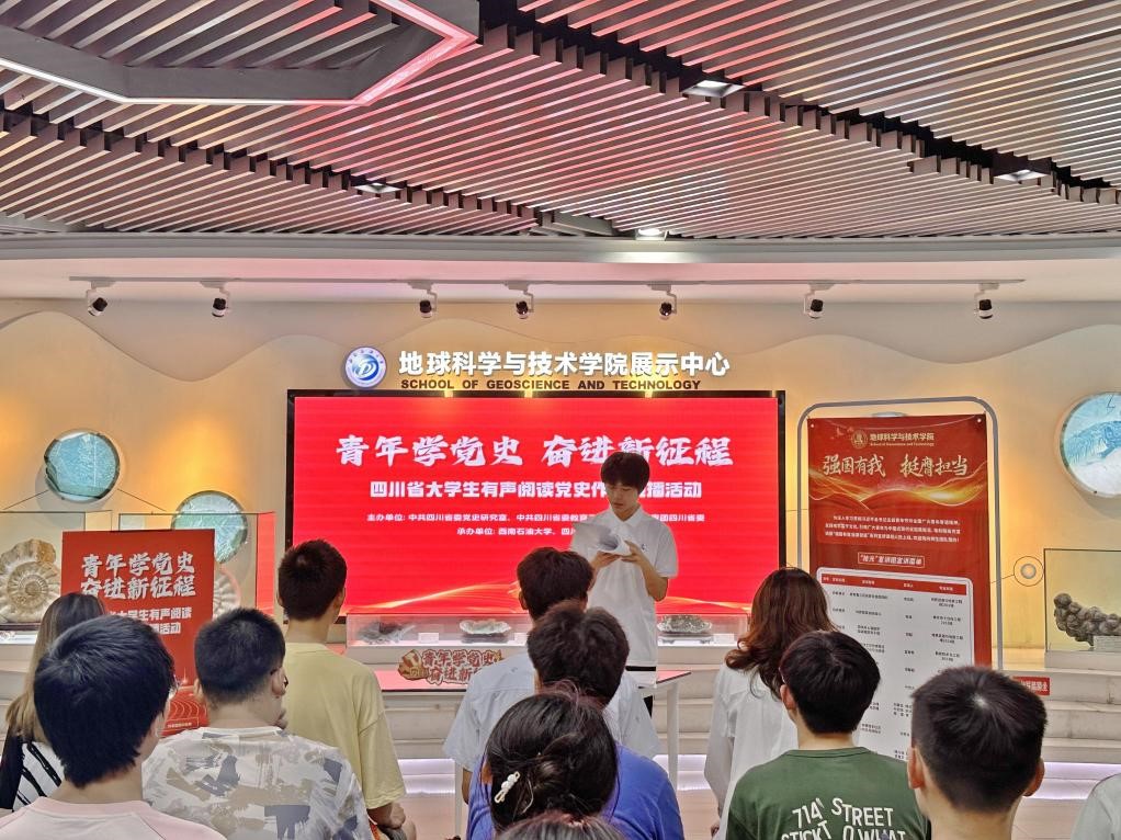 為深入學習宣傳貫徹黨的二十大精神,扎實推進“青年學黨史·奮進新征程”有聲閱讀黨史作品展播活動,6月20日下午,地科院“拾光”宣講團在明辨樓A區展廳組織召開“聆聽黨史之聲,弘揚地質精神”主題團日活動。地科院“拾光”宣講團3名成員參與宣講,勘查技術與工程專業2022級30位團員代表參加本次活動,活動由宣講團團長、地科院兼職輔導員李佳芮主持。