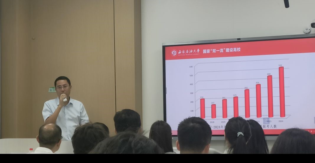 會上,劉宏分析了當前的考研形勢,強調了繼續深造對于提升職業競爭力的重要性;同時詳細講解了地科院專業的應用領域及未來前景,并分享了學校、學院的學科優勢。他鼓勵同學們積極備戰考研,以不懼困難的勇氣面對,更要對學校有信心,積極報考本校研究生。