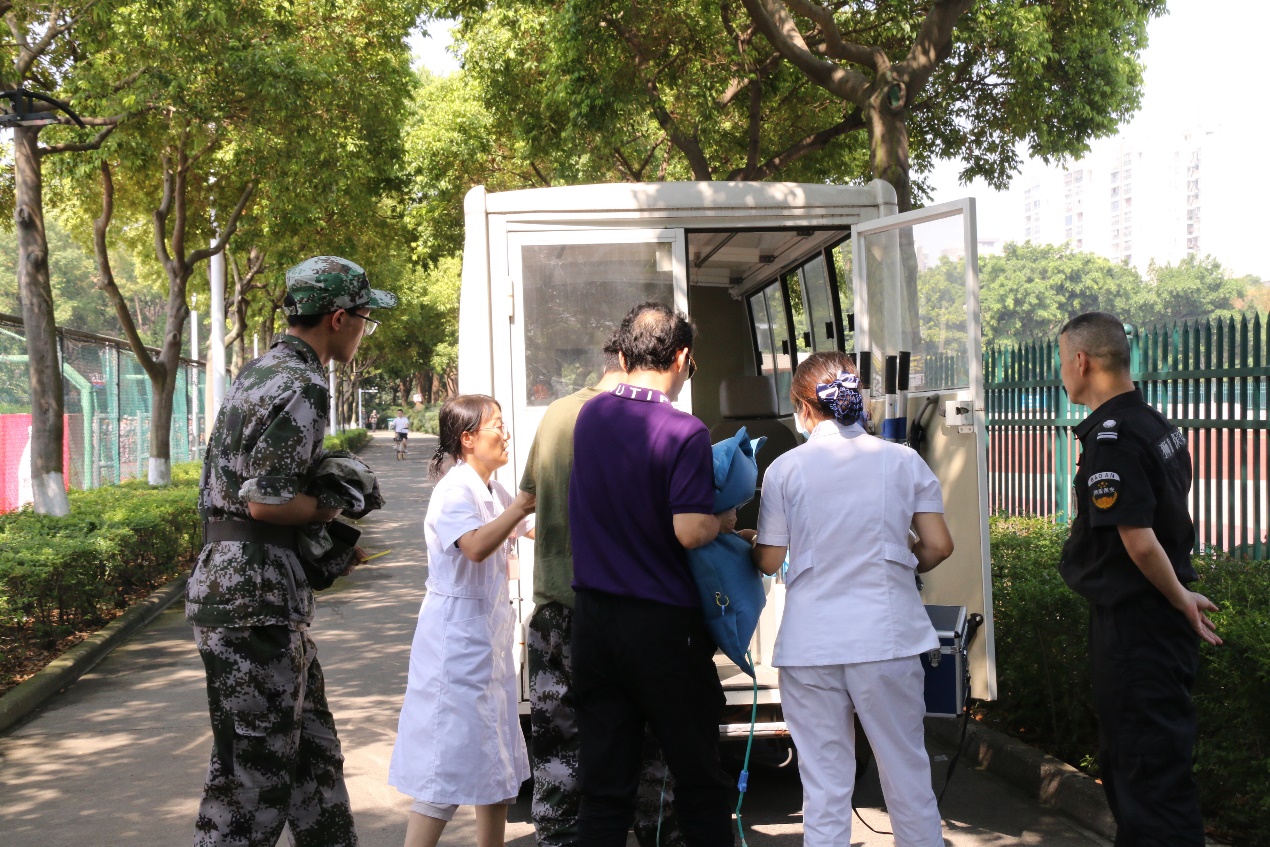 軍訓(xùn)場邊,醫(yī)務(wù)人員嚴(yán)陣以待守護(hù)生命健康。校醫(yī)院根據(jù)軍訓(xùn)期間學(xué)生可能出現(xiàn)的不適癥狀提前制定醫(yī)療保障方案,配備治療發(fā)熱、外傷、中暑等應(yīng)急藥品。軍訓(xùn)現(xiàn)場,遇到不慎中暑、暈倒或受傷的同學(xué),醫(yī)務(wù)人員們第一時(shí)間來到同學(xué)身邊,給予針對性的治療和處置。還有部分參訓(xùn)學(xué)生時(shí)因心理壓力和適應(yīng)困難,表現(xiàn)出緊張、焦慮等狀態(tài),醫(yī)護(hù)人員細(xì)心觀察呵護(hù)他們的心理狀態(tài)并及時(shí)開展疏導(dǎo)。現(xiàn)場共計(jì)安排3組醫(yī)護(hù)人員在各場地隨時(shí)處置同學(xué)們的健康異常狀況。