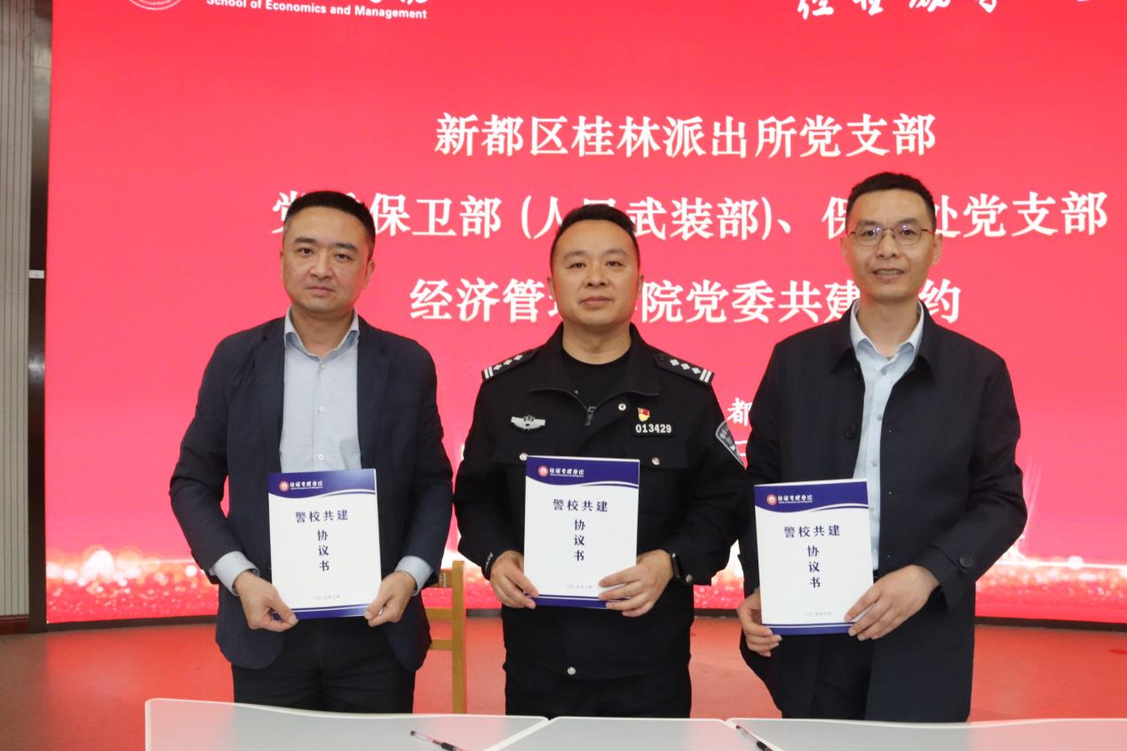 新都區(qū)桂林派出所、保衛(wèi)處、學(xué)院三方代表舉行了共建簽約,并向新都區(qū)桂林派出所指導(dǎo)員丁健、民警寇浩分別頒發(fā)法治副書(shū)記、法治輔導(dǎo)員聘書(shū)。