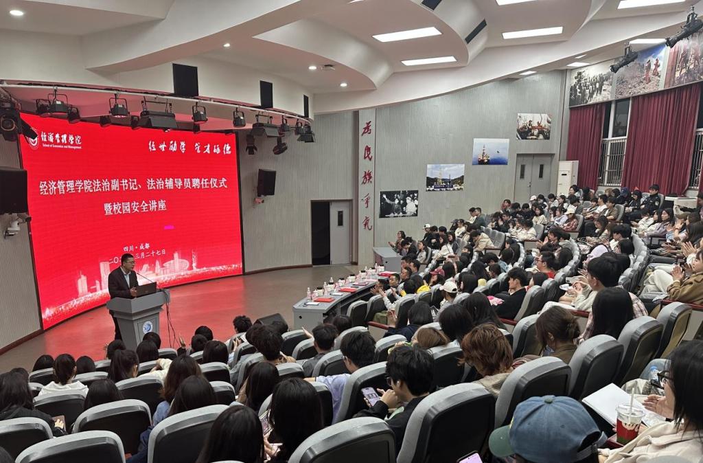 3月27日,經(jīng)濟(jì)管理學(xué)院與新都區(qū)桂林派出所在思學(xué)樓C110舉辦法治副書(shū)記、法治輔導(dǎo)員聘任儀式及校園安全知識(shí)講座。