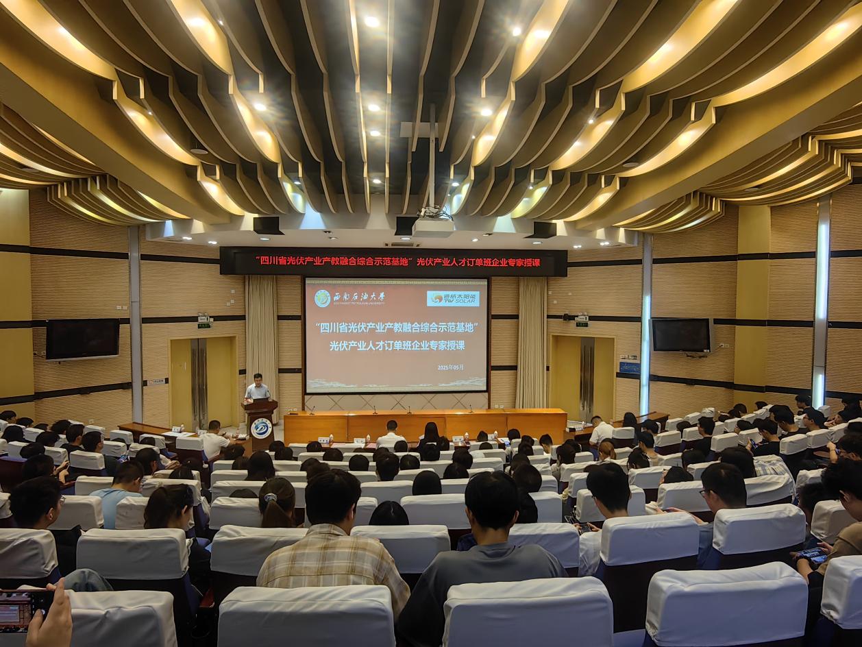 5月16日上午,四川省光伏產業產教融合綜合示范基地邀請通威太陽能有限公司企業專家蒞臨成都校區,為我校光伏產業人才訂單班授課。