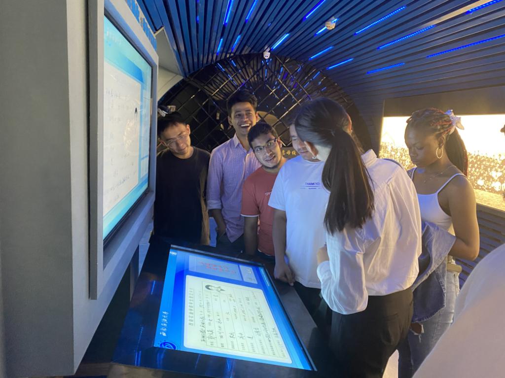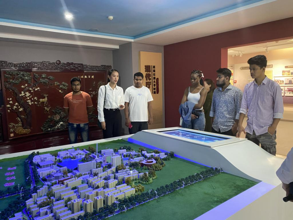 在學院外事秘書郭文英的帶領下,留學生參觀了校史館的序廳、大事記載廳等,一幅幅歷史照片和一件件歷史物件帶領留學生們回顧了西南石油大學的光輝建校史和璀璨的發展歷程,使他們對學校的深厚歷史背景以及在石油行業的卓越貢獻有了更深的理解。