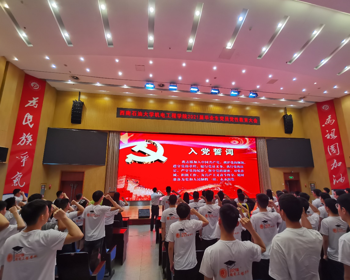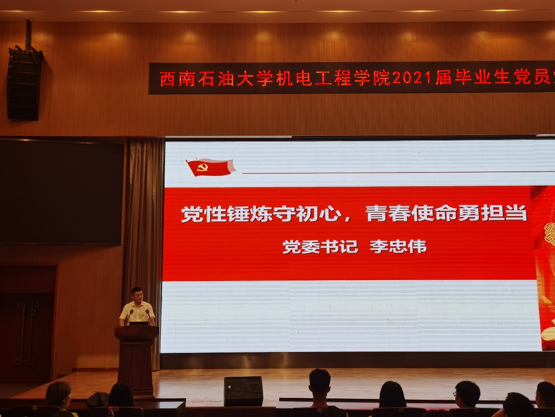 機電工程學院于6月2日上午在圖書館報告廳舉行2021屆畢業生黨員教育活動。學院黨委書記李忠偉、黨委副書記、紀委書記姚偉寧、組織員覃莉、學生黨支部書記及在校畢業生黨員參加了會議。