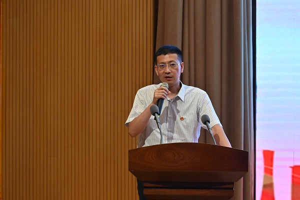 新黨員宣誓儀式結束后,由主持人介紹到場嘉賓及本次畢業生黨員教育大會的主講人:電氣信息學院黨委書記李澗松。李書記圍繞黨員思想教育工作這一主題展開了講話。他提到:“作為新一代黨員,我們要堅定理想信念,牢記職責使命,發揮先鋒模范作用,重拾入黨初心?!辈Ξ厴I生黨員未來的黨政思想建設工作提出了幾點要求:一是要勤于學習,不斷增強黨性觀念;二是要善于思考,時刻維護黨的利益;三是要勇于實踐,自覺爭做新時代的先鋒。