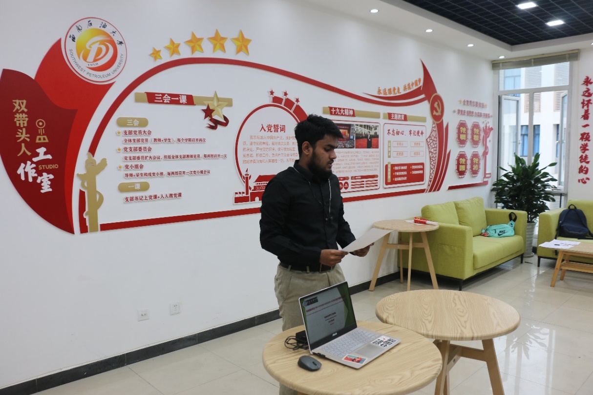 舒小立以《中國共產黨為什么“能”》為題與國際學生開展交流,她強調紅色革命文化凝聚著中國共產黨的光輝歷史,有著豐富的革命精神和厚重的歷史文化內涵。石油工程2019級本科生MD SHIHAB HOSSAIN SOJIB(孟加拉籍)與大家分享了中國革命英雄人物“王二小”的革命故事,與中國學生代表進行溝通交流,多方位、多角度了解中國革命歷史故事。他談到,通過學習中國革命英雄人物事跡去感知中國歷史,讓他對人類命運共同體的偉大理念有了更深刻的認知。與會國際學生分享了個人學習心得與體會,2017級本科畢業生ABDULLAHI KABIR HASSAN(尼日尼亞籍)談到,他將講好中國故事,傳播好中國聲音,成為促進各國人民民心相通的代表。最后,全體成員一起歌唱《沒有共產黨就沒有新中國》。
