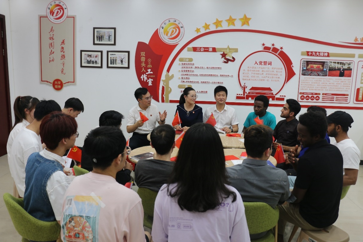 近日,來自32個國家的45名北京大學留學生代表給習近平寫信,向中國共產黨百年華誕致以美好的祝福。為進一步加強國際學生思想教育與日常管理,迅速掀起學習宣傳貫徹習近平總書記重要回信精神熱潮。6月24日下午,石工院組織來自巴基斯坦、塔吉克斯坦、孟加拉國等國家的9位國際學生與中國學生代表在明辨樓B523開展“感知中國·命運與共”中國革命故事分享交流會,學院團委書記舒小立、學工辦主任張繼、輔導員李安然參加活動。