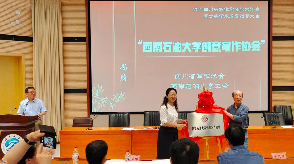 會上,四川省寫作學會與西南石油大學聯合建立了“四川省寫作學會實訓基地”、“西南石油大學創意寫作協會”,并進行了授牌儀式和揭牌儀式。