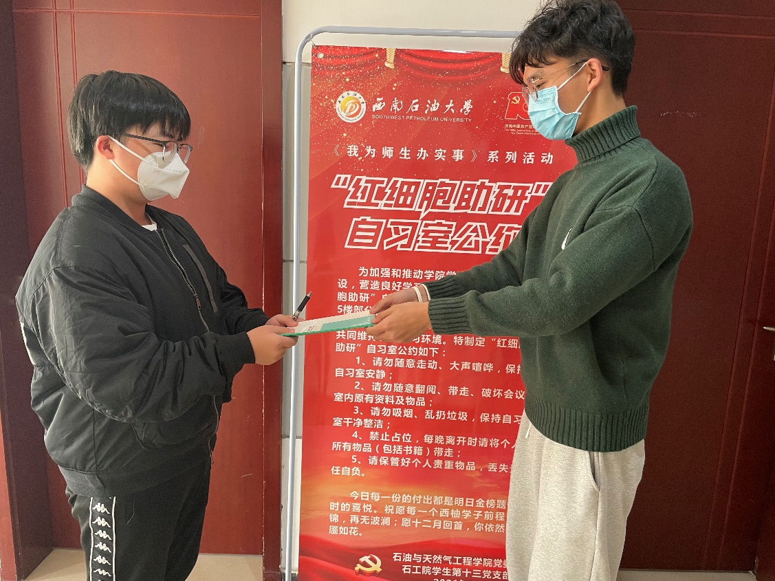 “加油班”即一對一優秀本科生黨員,通過筆記交接、線上幫扶、線下答疑等形式對被幫扶同學開展學業指導和經驗交流。幫扶課程主要包括《工程力學》《高等數學》《大學物理》等難度較大的公共課程,以及《鉆完井工程》《滲流力學》《油氣集輸》等理論性強的專業課程。