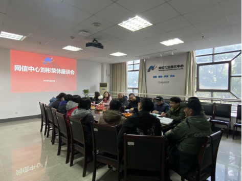 2022年1月11日下午3點,中心召開“網信中心劉彬榮休座談會”。會議由中心黨總支書記肖曉華主持,中心主任蒲和平、副主任汪立欣、技術總監榮休人員劉彬及各科室代表參加座談會。