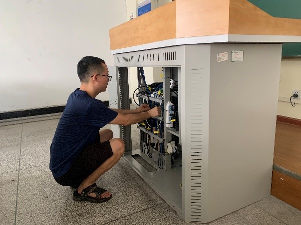 8月20日,教運部全體成員及維保公司按照中心檢修要求,對全校230間多媒體教室以及11間教學公共機房的設備進行檢修維護:包括調試計算機操作系統、應用軟件;調試音響系統,主要分為音響、功放、無線話筒、鵝頸話筒、吊麥;調試互動大屏;對投影儀進行除塵、深度清洗過濾網、更換投影燈泡;整理多媒體機柜內部凌亂、裸露的線路,確保設備使用的安全性;打掃多媒體教室及機房機柜的衛生,為全校師生提供干凈舒適的教學環境。
